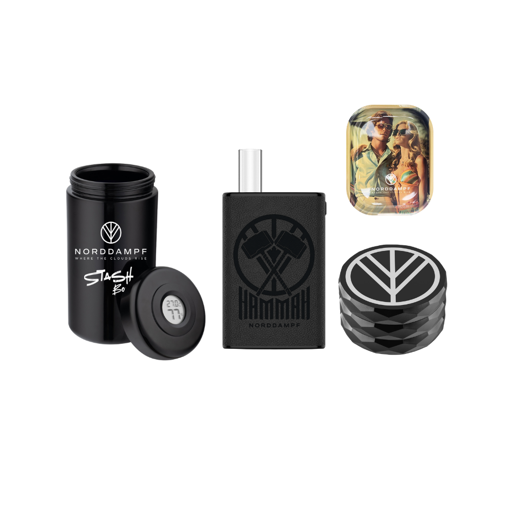 Das HAMMAH HERB BUNDLE vereint alles, was du für ein intensives und genussvolles Dampferlebnis mit Kräutern benötigst. Vom leistungsstarken HAMMAH Vaporizer über den hochwertigen Norddampf Grinder bis hin zur praktischen Stashbox und den stylischen Rolling Tray – dieses Bundle ist die perfekte Wahl für alle Kräuterliebhaber, die Qualität, Funktionalität und Design schätzen.