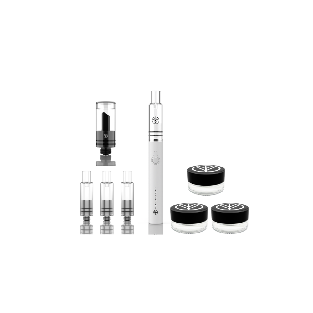 3 atomizzatori di ricambio e 1 Hot Knife ti permettono di goderti sempre boccate fresche e pulite, senza perdere potenza. I 3 barattoli per estratti ti offrono spazio a sufficienza per diversi concentrati e tengono il tuo materiale al sicuro, a tenuta stagna e a portata di mano, sia a casa che in viaggio. Questo pacchetto è perfetto per chi cerca un set per dabbing compatto ma completo, in un elegante colore bianco.