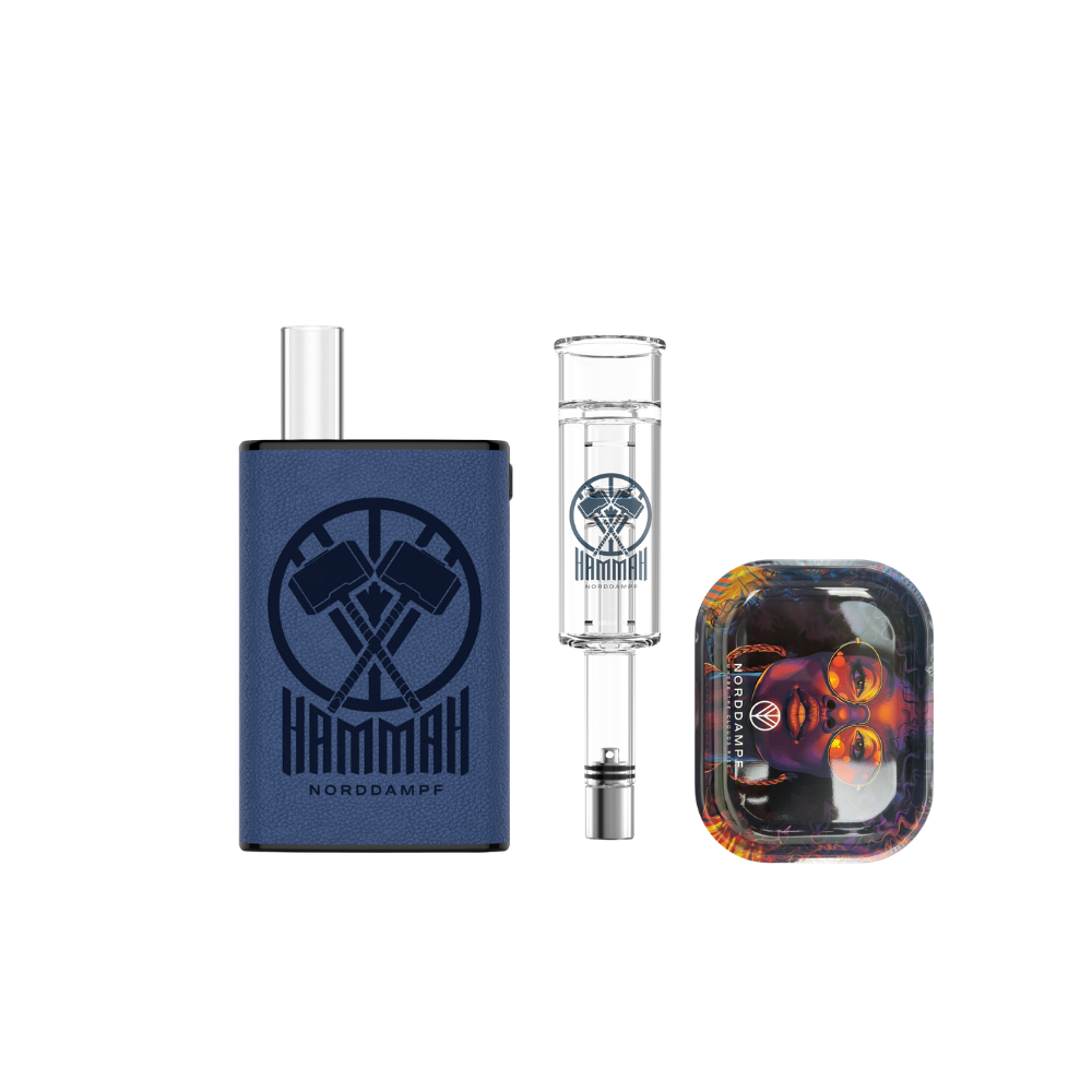 Il pacchetto Hammah ti dà tutto quello che ti serve per un'esperienza di vaporizzazione di alta qualità, in un formato compatto. Con il vaporizzatoreHammah , il Hammah abbinato e un vassoio di rollaggio, sei pronto per goderti delle sessioni piacevoli con stile e ordine.