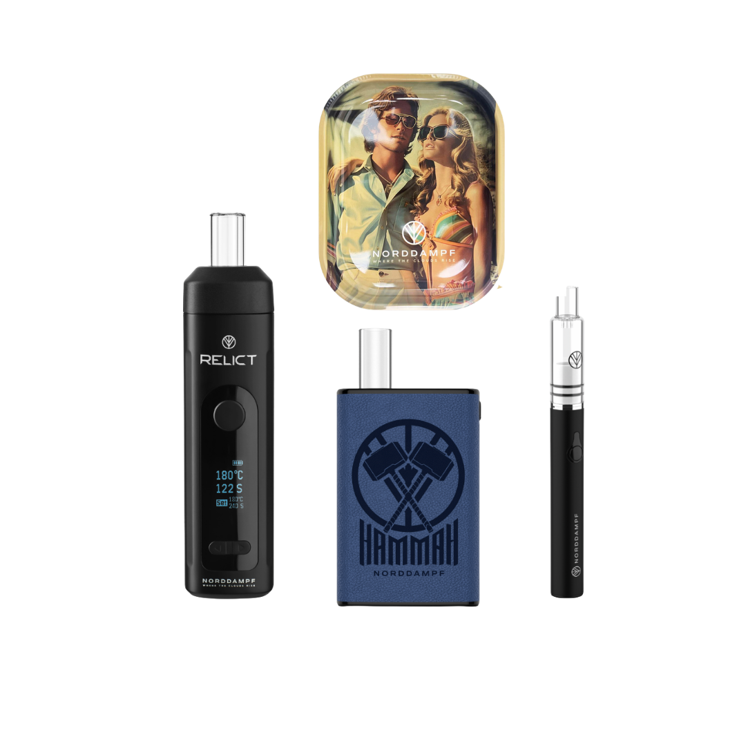 W zestawie znajdziesz Relict , kompaktowe urządzenie o prostych liniach i niezawodnej wydajności. Hammah charakteryzuje się dużą mocą i przekonuje solidnym wykonaniem oraz nowoczesnym wyglądem. Dab Pen Mini to idealny towarzysz w podróży – dyskretny, lekki, a jednocześnie skuteczny. Całość dopełniają dwie tacki do zwijania, dzięki którym zawsze możesz wszystko przygotować w czysty i uporządkowany sposób.